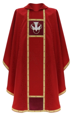 ( number of products: 33 )Pentecost chasubles are worn during the Descent of the Holy Spirit upon the Apostles. The primary liturgical colour for Pentecost is a rich, fiery red that symbolises the tongues of flame that descended upon the disciples, and royal gold. Red vestments are also present on other feasts of the Holy Spirit, the apostles, evangelists, and martyrs.