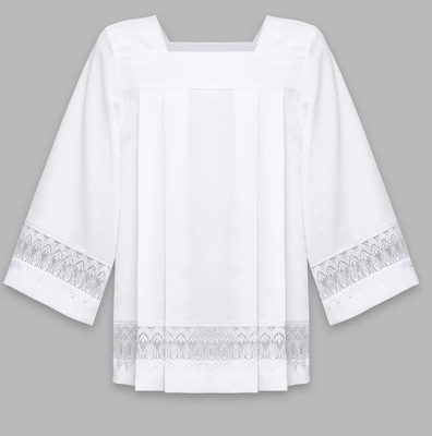 ( numero di prodotti: 14 )Le comunioni sono paramenti liturgici pensati, come gli albi, per i servitori dell'altare. Il camice è una sorta di albetto abbreviato, ma il cingolo - il cordone che simboleggia la purezza - non viene indossato con esso. Ogni camice è cucito con un tessuto bianco che simboleggia la purezza dell'anima e del cuore. Nell'offerta del nostro negozio di paramenti liturgici presentiamo una selezione molto ampia di vari tipi di paramenti. Tutti sono realizzati in georgette leggera o in tessuto elasticizzato per un comfort totale. Alcuni di essi presentano elementi decorativi aggiuntivi sotto forma di guipure o di ricami precisi. Nel nostro negozio è possibile acquistare le comunioni cucite nel taglio romano (caratterizzato da una scollatura quadrata). Tutti i modelli di camoscio sono pensati sia per i ragazzi bassi che per gli uomini relativamente alti: basta scegliere la taglia giusta sul pannello.